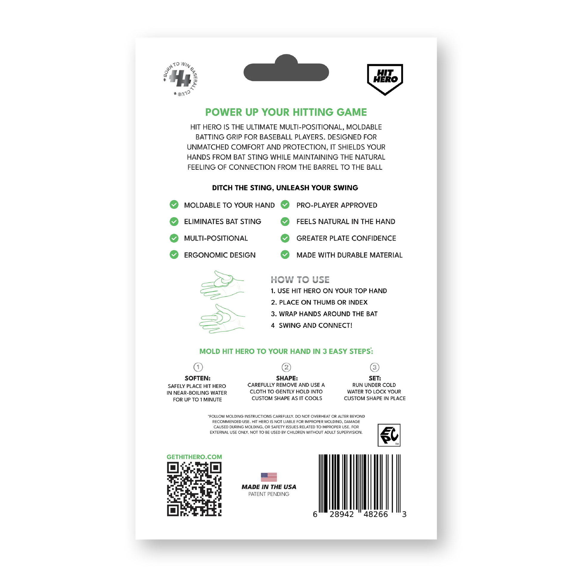 Transform your game with Hit Hero V2, the latest evolution in thumb protection and grip support. Now featuring a custom-moldable fit, V2 adapts to your hand for superior comfort, control, and confidence at the plate.